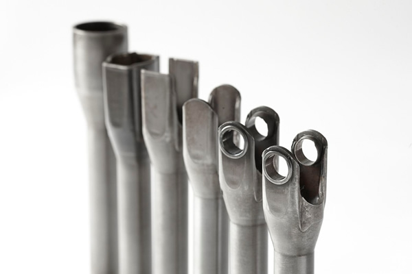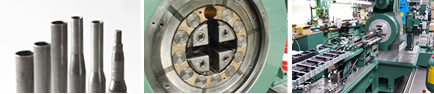 *Swaging is a forging process in which the dimensions of an item is reduced by continuous strikes by the separated swaging dies while they are rotating in high-speed.
